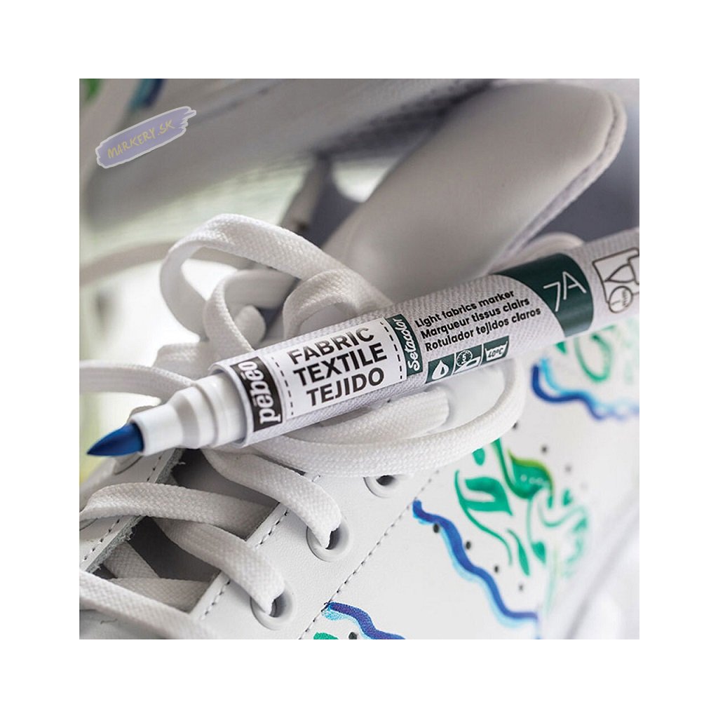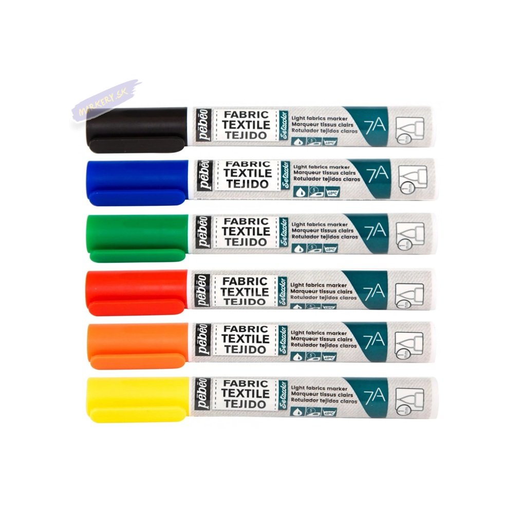 PEBEO 7A Light Fabric sú profesionálne popisovače na svetlý textil. Fixy majú 1mm štetcový hrot na presné nanášanie farby a obsahujú žiarivý, polopriehľadný atrament vhodný pre aplikáciu na predtým vyprané svetlé a jemné tkaniny. Všetky farby je možné zafixovať nažehlením na rubovú stranu látky po dobu 5 minút (bez pary), potom, čo sa aplikácia nechá 2 hodiny schnúť na vzduchu. Po zafixovaní farby drží pri ručnom praní alebo praní v práčke do 40 °C. Pred použitím dobre pretrepte.