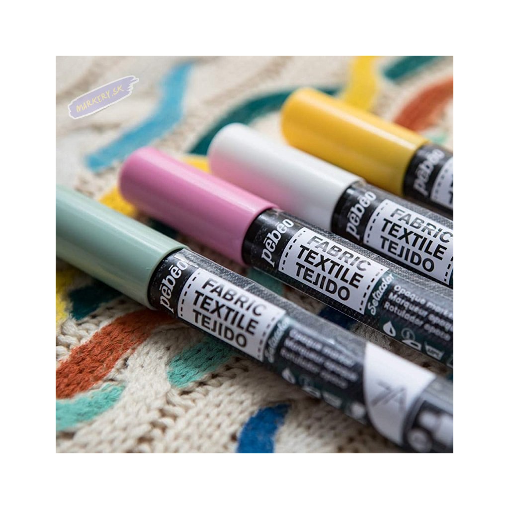 PEBEO 7A Opaque sú profesionálne popisovače na textil. Fixy majú 4mm okrúhly hrot na presné nanášanie farby a obsahujú žiarivý, polopriehľadný atrament vhodný pre aplikáciu na svetlé a farebné tkaniny. Všetky farby je možné zafixovať nažehlením na rubovú stranu látky po dobu 5 minút (bez pary), potom, čo sa aplikácia nechá 2 hodiny schnúť na vzduchu. Po zafixovaní farby drží pri ručnom praní alebo praní v práčke do 40 °C. Pred použitím dobre pretrepte.