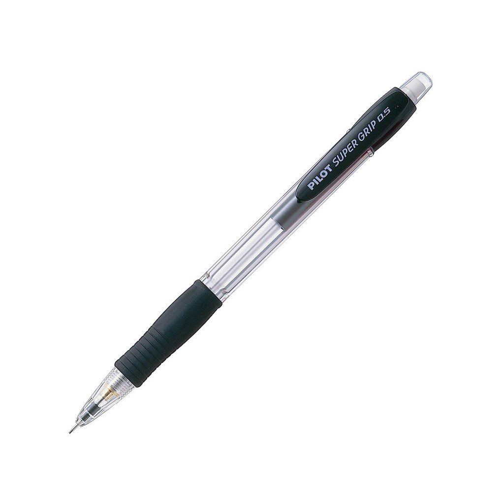 Super Grip 0,5mm je mechanická ceruzka so zasúvateľným a posuvným kovovým puzdrom pre úplné využitie tuhy. Jeho úchopová zóna bola navrhnutá tak, aby držanie bolo pohodlné. Super Grip 0,5mm obsahuje integrovanú gumu, ktorá je chránená čírym plastovým viečkom.