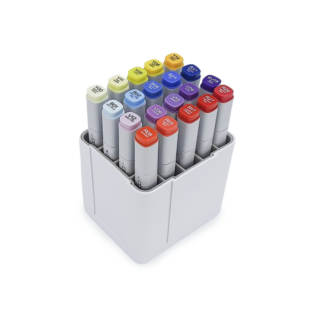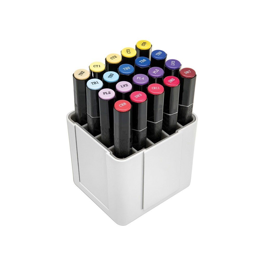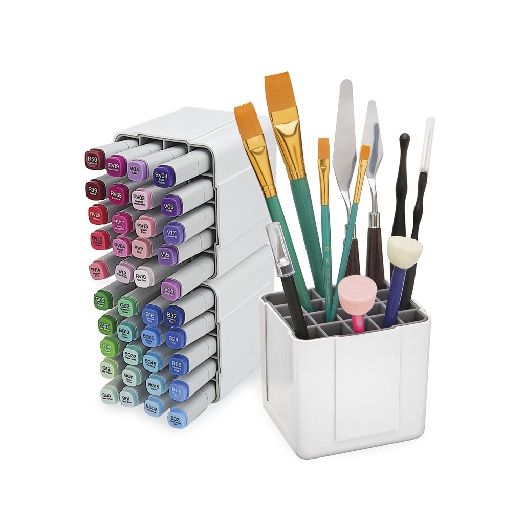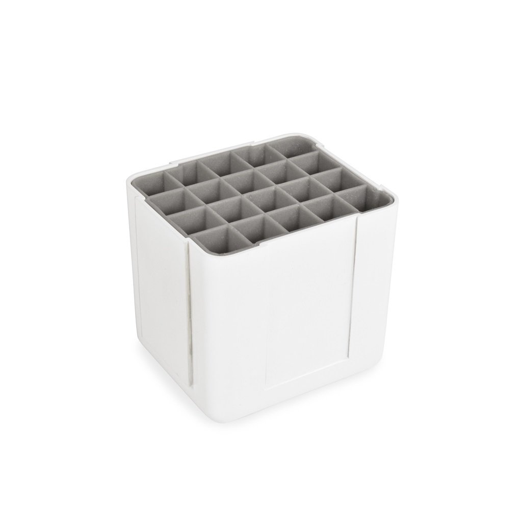 Prázdna plastová krabička pre 20 kusov popisovačov. Viac škatuliek je možné do seba zo všetkých 4 strán zacvakávať a vytvoriť tak veľký úložný priestor.
