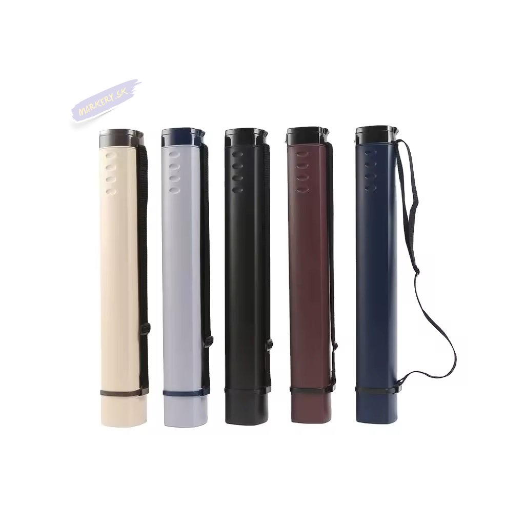Praktické plastové puzdro na výkresy má priemer 8 cm a nastaviteľnú dĺžku od 62 cm do 102 cm. Popruh umožňuje ľahké prenášanie tubusu.
