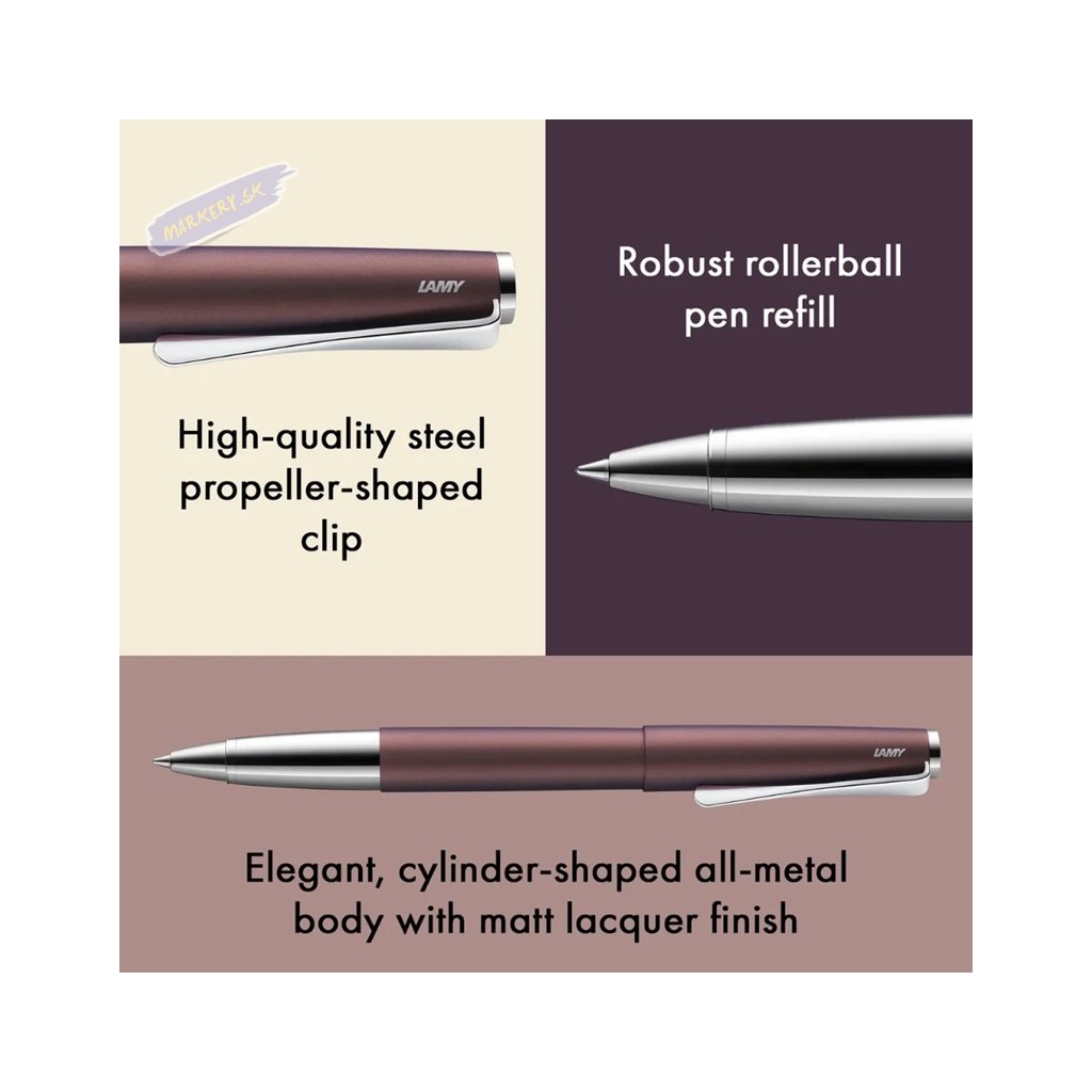 Roller LAMY Studio Orion Matt je elegantná ukážka, kedy sa design blíži umeniu. Úplne nová interpretácia a výnimočne príťažlivé tvary inšpirované modernými výtvarnými formami. Roller má matne hnedočerveno lakované telo z nerezovej ocele. Vysoko leštený pochrómovaný úchop a klip z nerezovej ocele v originálnom tvare vrtule.