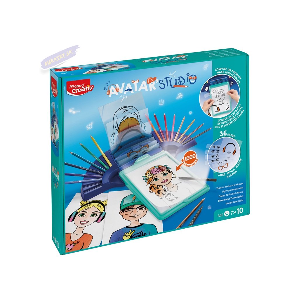 Kreatívna sada Maped Creativ Avatar Studio je tabuľka s podsvietením, vďaka ktorej môžeš skladať a kresliť jedinečné avatary podľa svojej fantázie a stať sa tak skutočným portrétistom. Vyberajte, zostavujte a kreslite tváre bez obmedzenia.