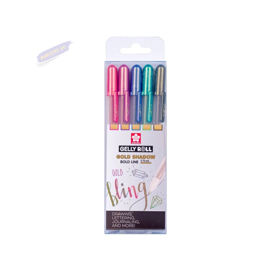 Gélové popisovače SAKURA Gelly Roll SHADOW, set 5ks Gold Shadow