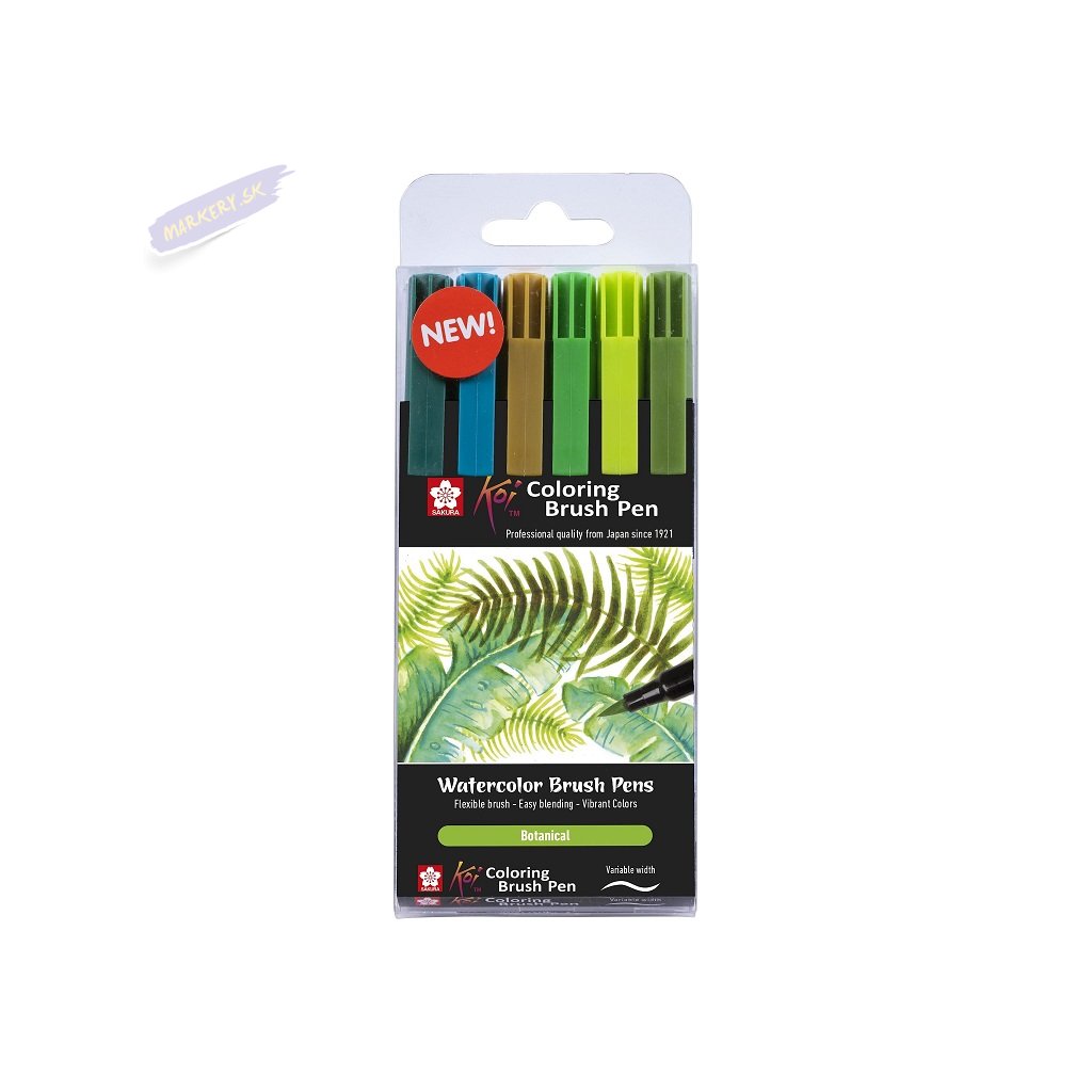 Akvarelové fixky Sakura KOI štetcové, 6ks Botanical