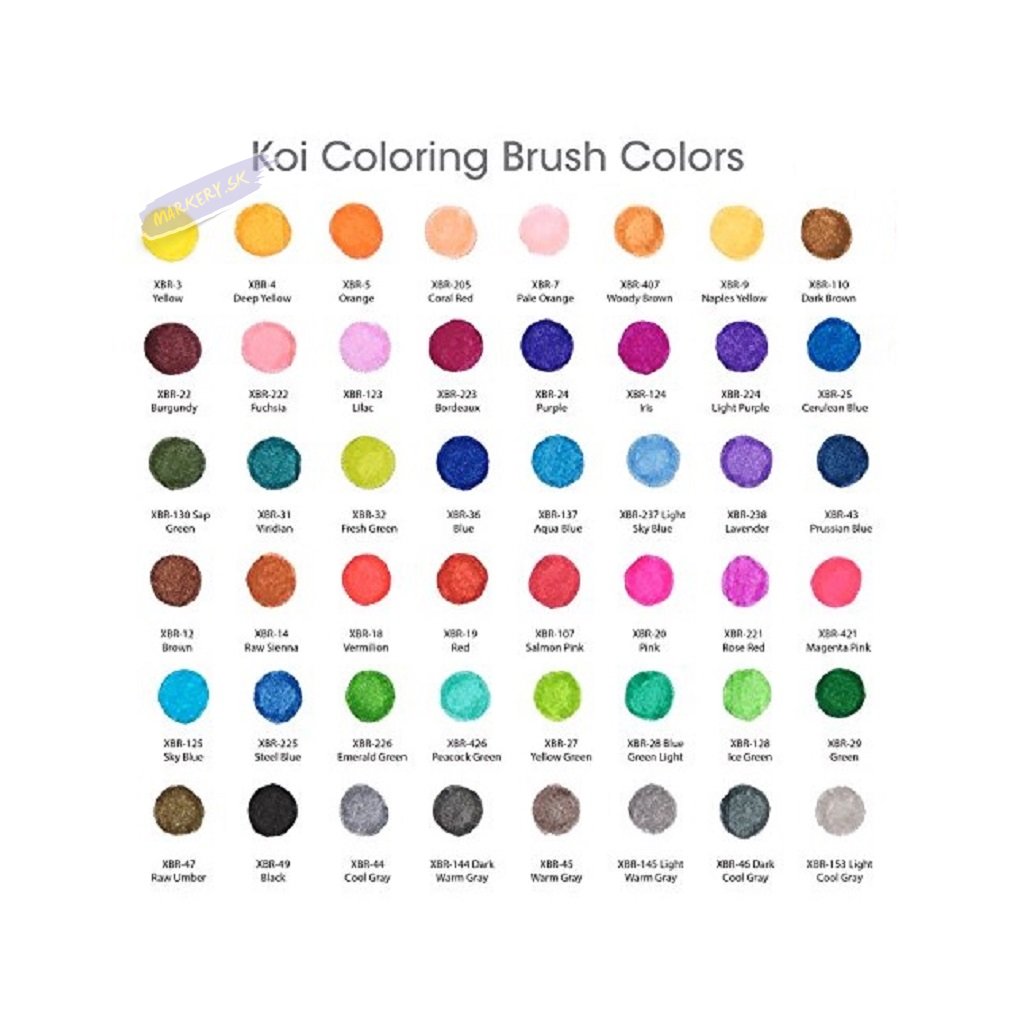 KOI štetcový fix je naplnený tušovou farbou na vodnej báze, pred finálnym zaschnutím je možné rôzne odtiene do seba vmiešavať ako je tomu u klasických akvarelových farieb. Farbu je možné dodatočne rozmievať ako mokrým štetcom, tak špeciálnym „blenderom“. Blender je bezfarebný štetčekový marker vhodný predovšetkým na rozmývanie okrajov a zmäkčovanie prechodov. Farba použitá pre fixky KOI farba má pestrú škálu 58 jasných, výrazných odtieňov. Stopa je transparentná, pokladaním ďalších vrstiev odtieň stmavujete a vytvárate tak ďalšie farebné tóny.