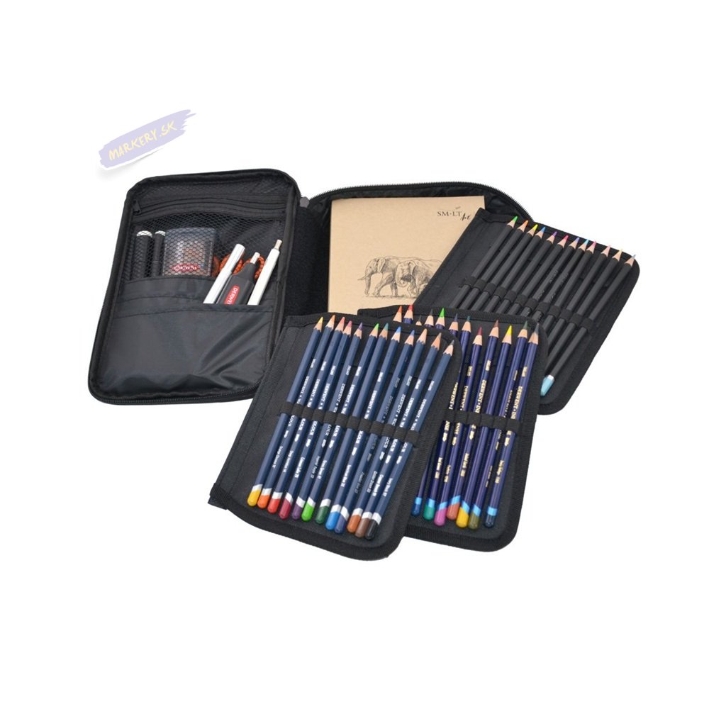 Elegantný šedý textilný peračník so zipsom a vnútornými organizérmi je perfektným úložným riešením pre vášnivých umelcov, ktorí si radi berú svoju kreativitu kamkoľvek so sebou.S kapacitou 72 ceruziek a pasteliek, rozložených na 3 odnímateľných chlopniach, ponúka toto puzdro optimálnu organizáciu pre všetky vaše kresliace potreby. Jeho veľký úložný priestor umožňuje uloženie aj zošita A5 a niekoľko vreciek ponúka úložný priestor pre štetce, gumy a mnoho ďalšieho príslušenstva. Rozmery 25x20x5,5cm. Materiál: syntetická tkanina.