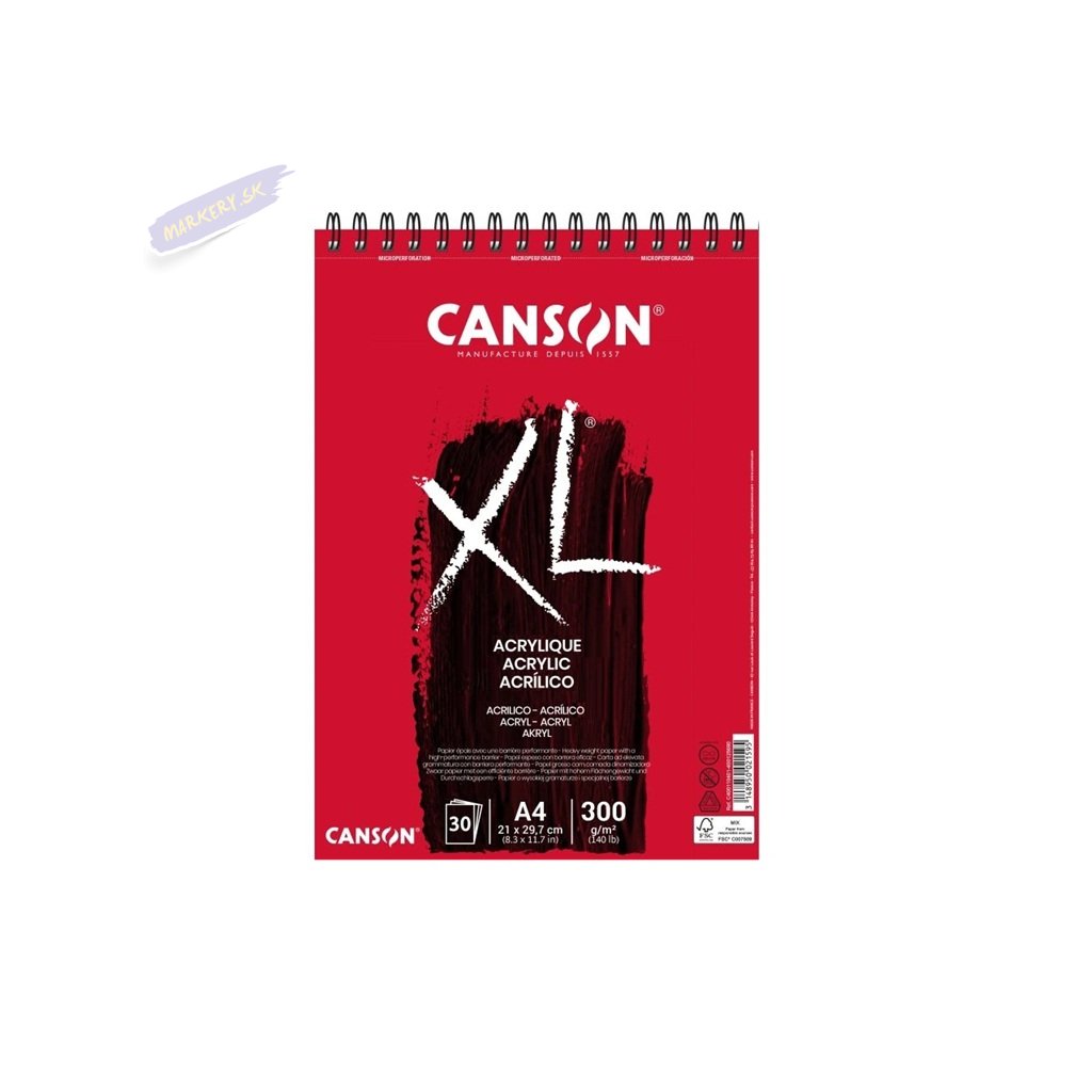 Rad CANSON XL bol špeciálne vyvinutý, aby vyhovoval potrebám študentov umenia. Vysoko kvalitný, odolný papier, obsahuje 30 listov 300g/m2. Je dostatočne pevný, aby odolal vode a následným vrstvám farby, a má textúru podobnú plátnu, ktorá krásne drží farby.
