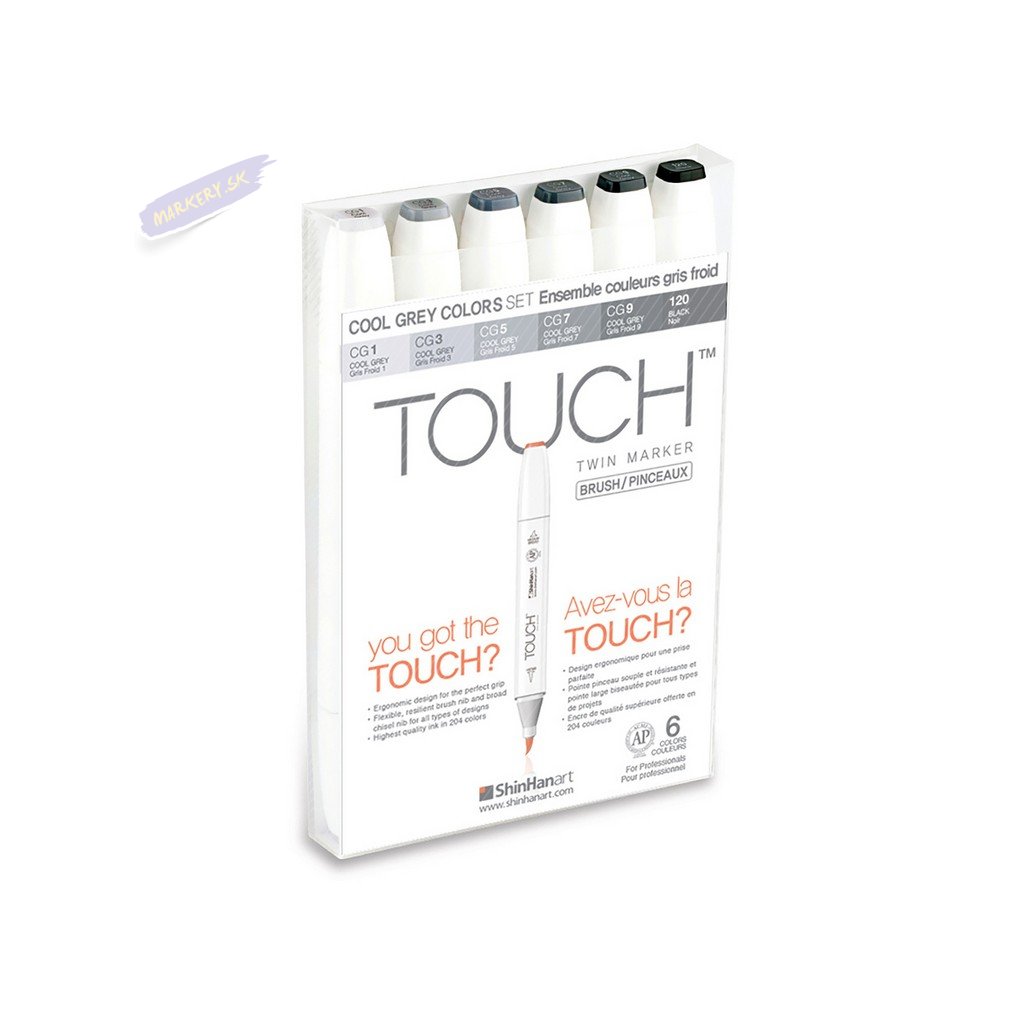 Liehové fixky TOUCH obojstranné Brush & Chisel, 6ks šedé Cool