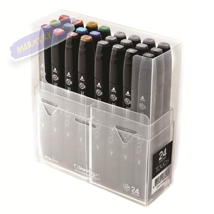 Jemný hrot na jednej strane a široký skosený hrot na strane druhej popisovača TOUCH Twin Marker (bez štetca) ponúka rozsah hrúbok čiar väčší ako kedykoľvek predtým. Ergonomicky tvarované telo obdĺžnikového tvaru brania kotúľania sa po pracovnej ploche a umožňuje pohodlné odloženie bez neúmyselných šmúh. Špeciálne navrhnutý bezpečnostný uzáver pevne drží na popisovači a zabraňuje poškodeniu hrotu. Twin Marker obsahuje atrament na báze alkoholu, ktorý je rýchloschnúci, netoxický a vode odolný.