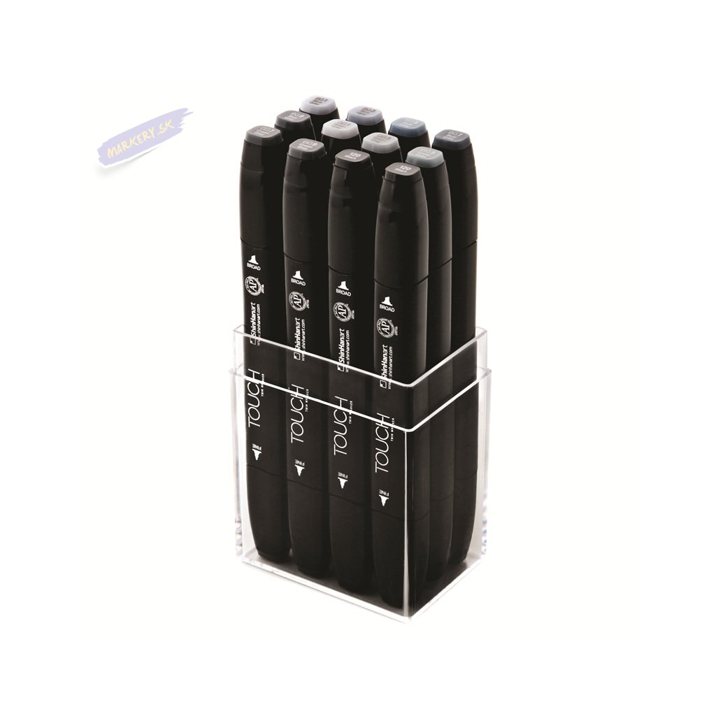 Jemný hrot na jednej strane a široký skosený hrot na strane druhej popisovača TOUCH Twin Marker (bez štetca) ponúka rozsah hrúbok čiar väčší ako kedykoľvek predtým. Ergonomicky tvarované telo obdĺžnikového tvaru brania kotúľania sa po pracovnej ploche a umožňuje pohodlné odloženie bez neúmyselných šmúh. Špeciálne navrhnutý bezpečnostný uzáver pevne drží na popisovači a zabraňuje poškodeniu hrotu. Twin Marker obsahuje atrament na báze alkoholu, ktorý je rýchloschnúci, netoxický a vode odolný.