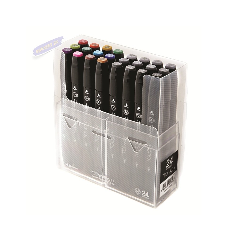 Jemný hrot na jednej strane a široký skosený hrot na strane druhej popisovača TOUCH Twin Marker (bez štetca) ponúka rozsah hrúbok čiar väčší ako kedykoľvek predtým. Ergonomicky tvarované telo obdĺžnikového tvaru brania kotúľania sa po pracovnej ploche a umožňuje pohodlné odloženie bez neúmyselných šmúh. Špeciálne navrhnutý bezpečnostný uzáver pevne drží na popisovači a zabraňuje poškodeniu hrotu. Twin Marker obsahuje atrament na báze alkoholu, ktorý je rýchloschnúci, netoxický a vode odolný.