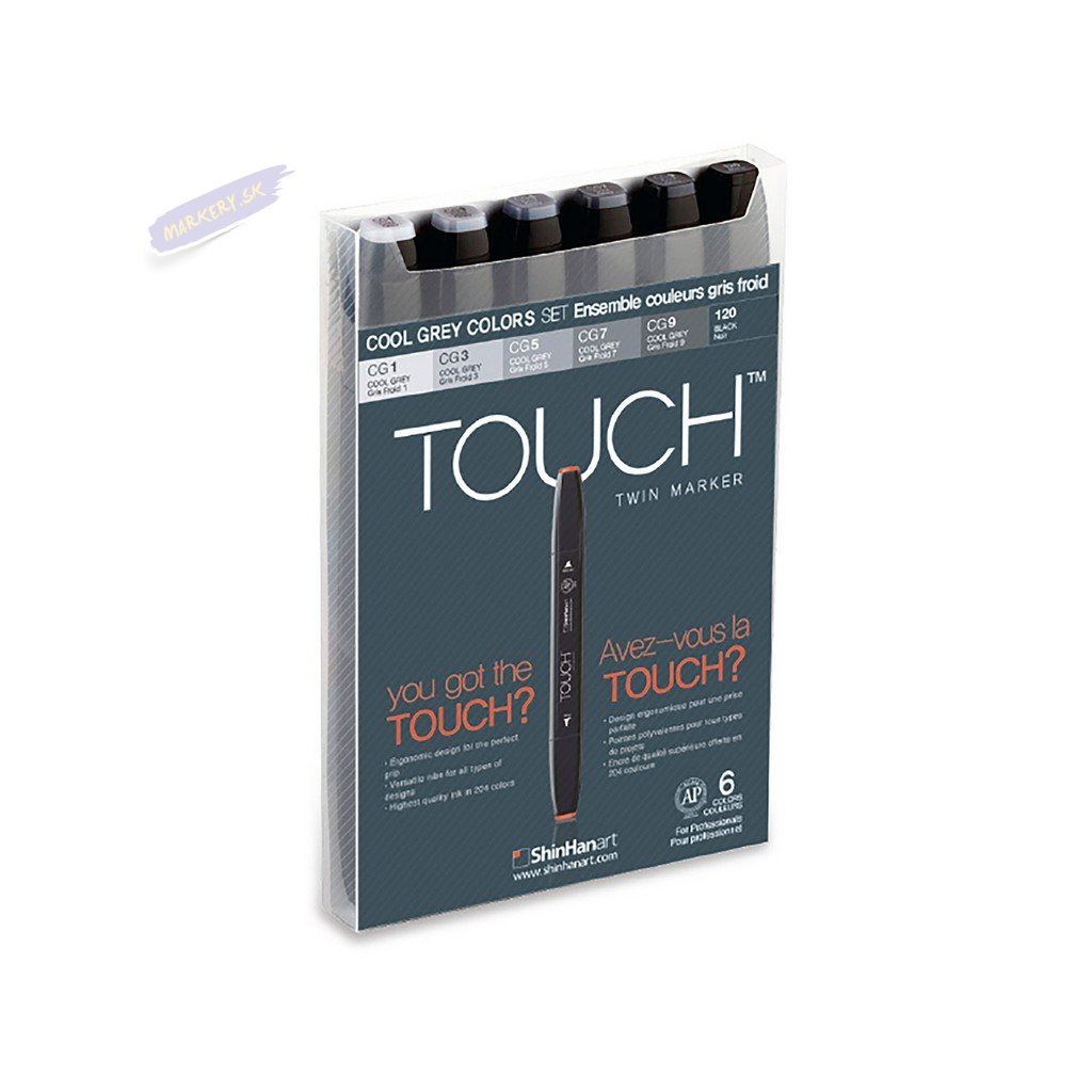 Liehové fixky TOUCH obojstranné Fine & Chisel, 6ks šedé Cool