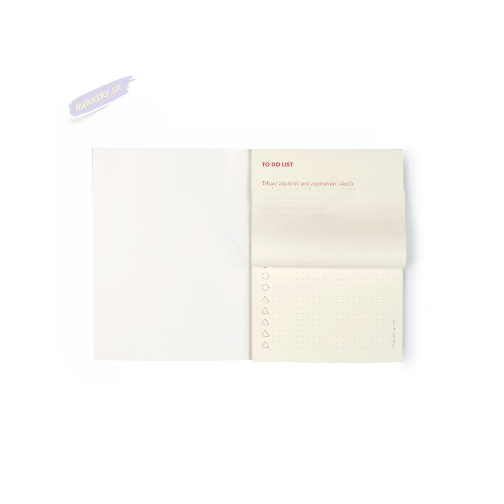 Veľké úlohy je niekedy lepšie rozpísať do niekoľkých menších povinností. Bude sa vám totiž lepšie pracovať a odškrtnuté úlohy vás budú motivovať ďalej. Vďaka lepenej väzbe môžete papier vytrhnúť a mať ho stále pri sebe. To do list obsahuje tri rôzne symboly. Pokiaľ potrebujete svoje povinnosti nejako odlíšiť, rozdeľte úlohy podľa nich. Každý symbol môže vyjadrovať niečo iné – napríklad: práca, škola, domácnosť, deti, nákupy, povinnosti, hobby, zábava, cvičenie alebo osobný rozvoj.