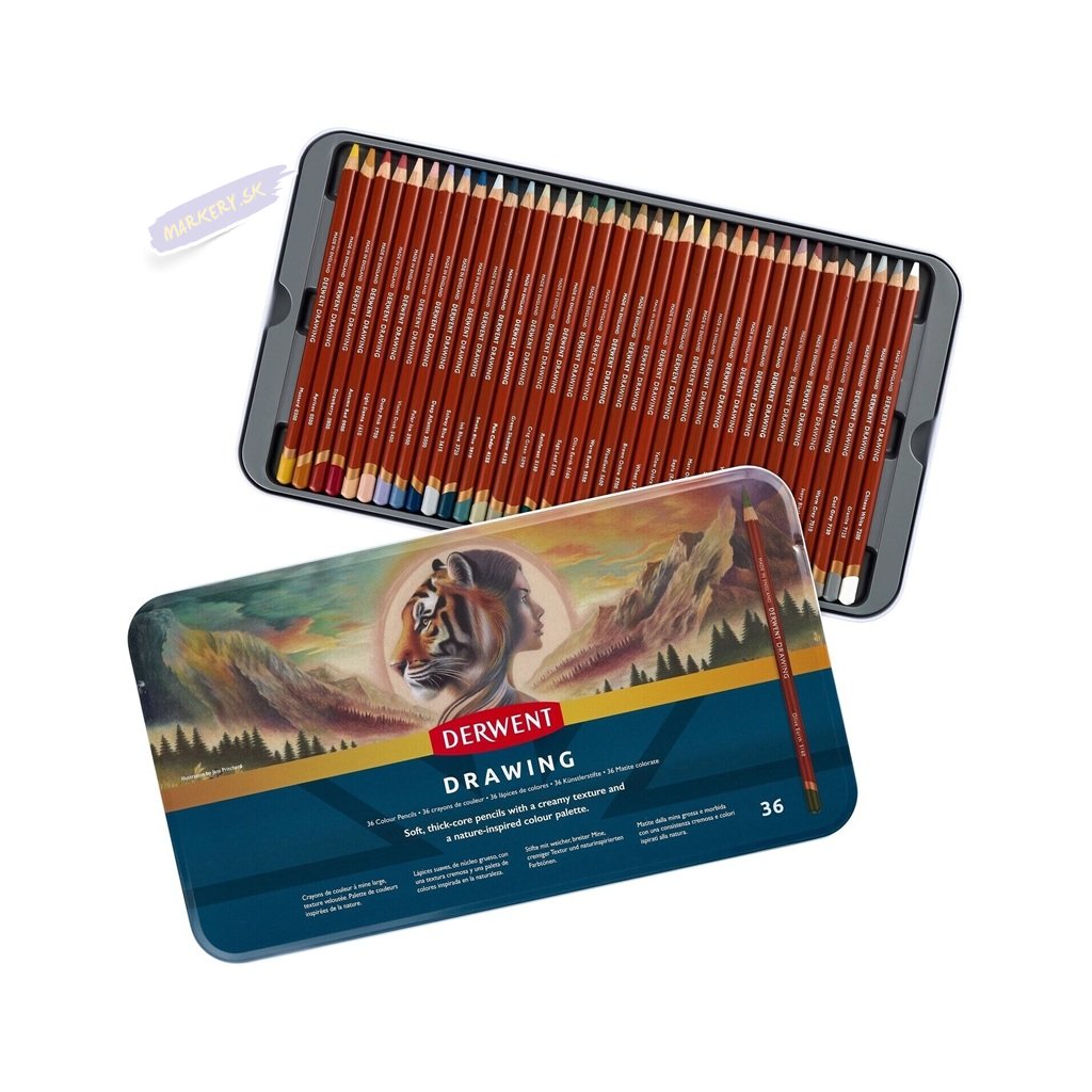 Umelecké pastelky DERWENT Drawing, 36ks v kovovej krabičke