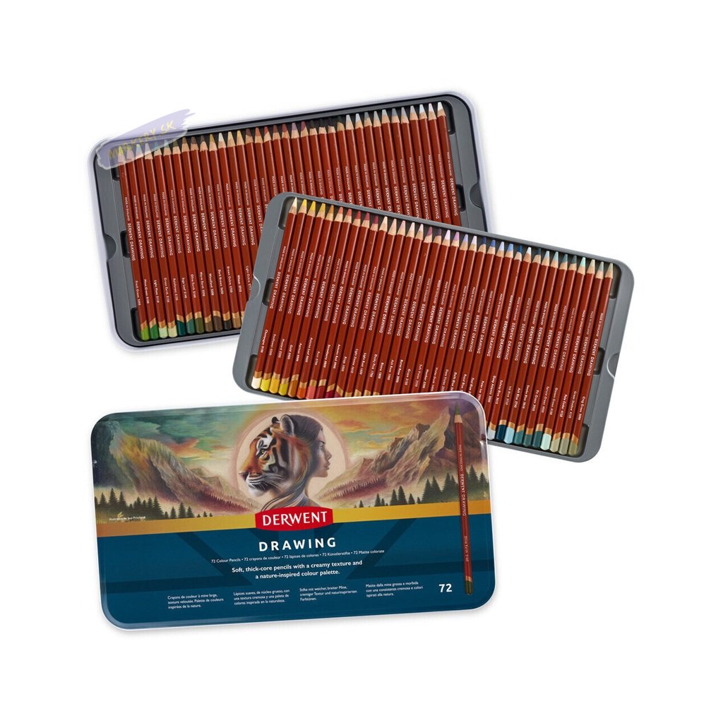 Umelecké pastelky DERWENT Drawing, 72ks v kovovej krabičke