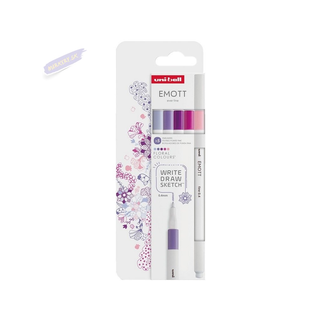 UNI EMOTT fine liner 0,4mm, 5ks Floral