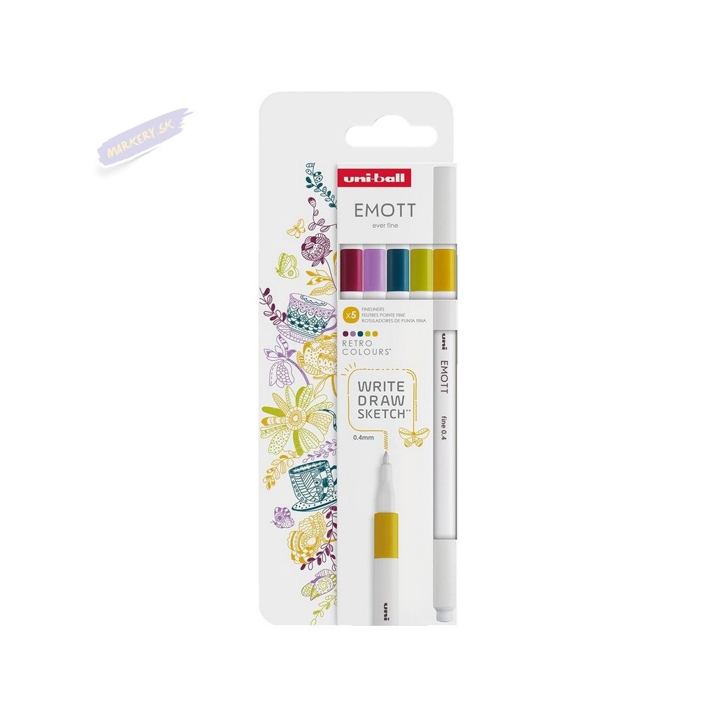 UNI EMOTT fine liner 0,4mm, 5ks Retro