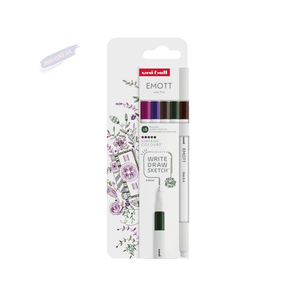 UNI EMOTT fine liner 0,4mm, 5ks Vintage