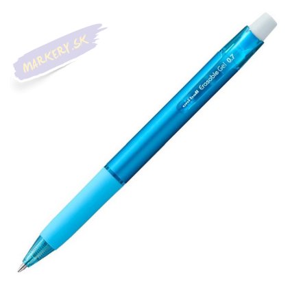 Gumovacie pero UNI ERASABLE s termo citlivým mazateľným atramentom. Jednoduchým utretím atramentovej linky viečkom alebo koncom pera sa vygeneruje dostatok tepla, aby vymazalo linku. Text zneviditeľníte zahriatím, ktoré vznikne trením plastovej koncovky na papieri. Rovnakým perom potom môžete prepísať vymazaný text. Vymazané linky sa znovu objavia, ak sú vystavené veľmi nízkym teplotám (-18 °C). Gumovacia plocha je na hornej strane viečka a tiež na konci pera. Praktický detail pre všetkých, ktorí si pri písaní radi dávajú viečko na koniec pera. Nebudete teda musieť dávať dole viečko zakaždým, keď budete chcieť niečo vymazať.
