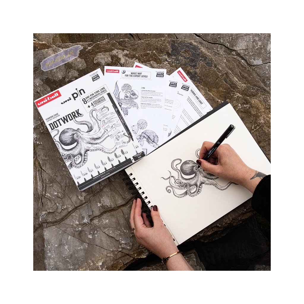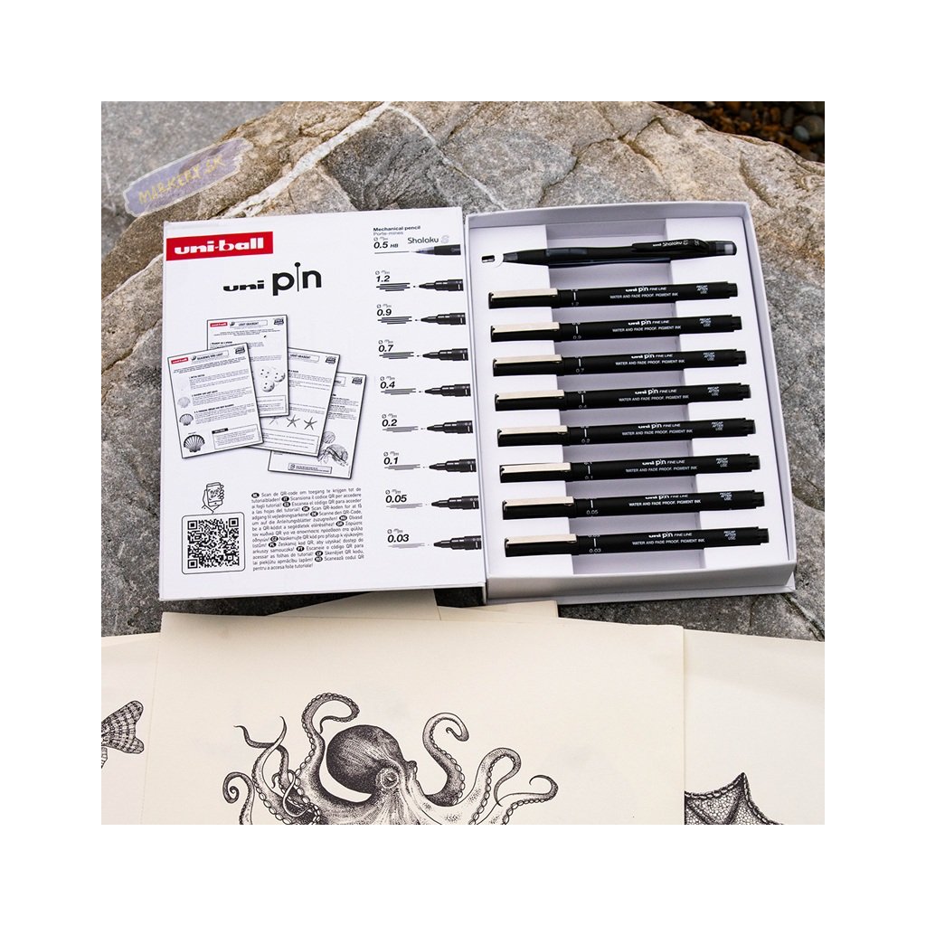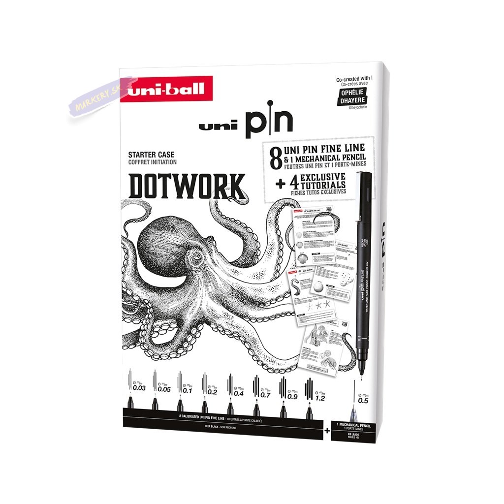 UNI PIN fine liner, sada 9ks Dotwork v darčekovom boxe