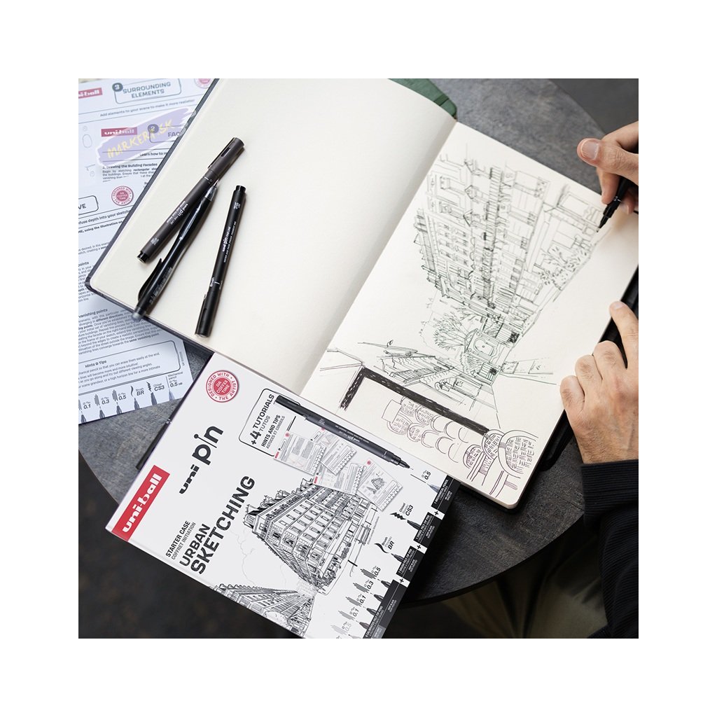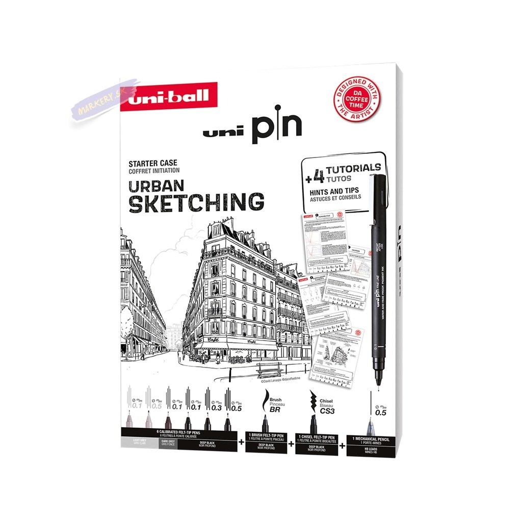 Objavte Urban Sketching - kreslenie mestského života, scenérií a atmosféry tak, ako ju práve prežívate. Sada vybraných linerov PIN navrhnutá Davidom Lanapsom alias Da Coffee Time, so štyrmi tutoriálmi a tipmi a trikmi, ako reprodukovať danú predstavu. Naskenujte QR kód vo vnútri sady a stiahnite si tutoriál v slovenskom jazyku.