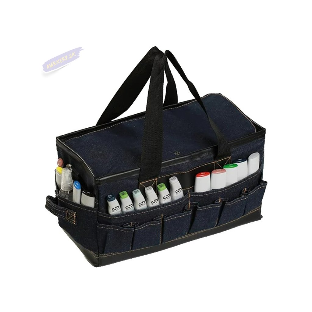 Praktická taška na popisovače v džínsovom dizajne Denim Jean. Vhodná na skladovanie a prenášanie fixiek a ďalších umeleckých potrieb. Obsahuje vonkajšie vrecká a 4 vnútorné úložné priestory s odnímateľnými prepážkami. Veľkosť tašky je cca 36x18x20cm.