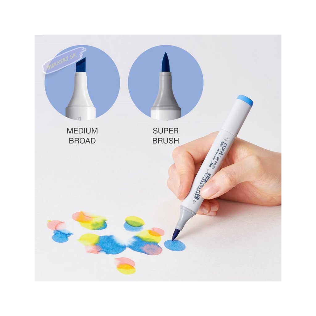 COPIC Marker Sketch je doplniteľný obojstranný dizajnérsky popisovač s atramentom na liehovej báze. Okrem univerzálneho stredne širokého šikmého hrotu má aj hrot štetcový, ktorý sa vyznačuje uvoľnenejším, živším rukopisom. Celosvetový bestseller je ergonomický, ultra miešateľný a naplnený najkvalitnejšími atramentmi a farbivami.