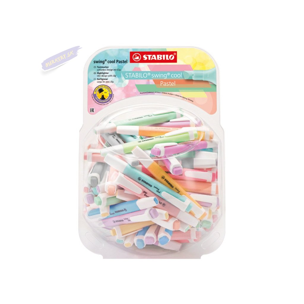 Zvýrazňovač STABILO swing cool Pastel, 100ks v stojančeku