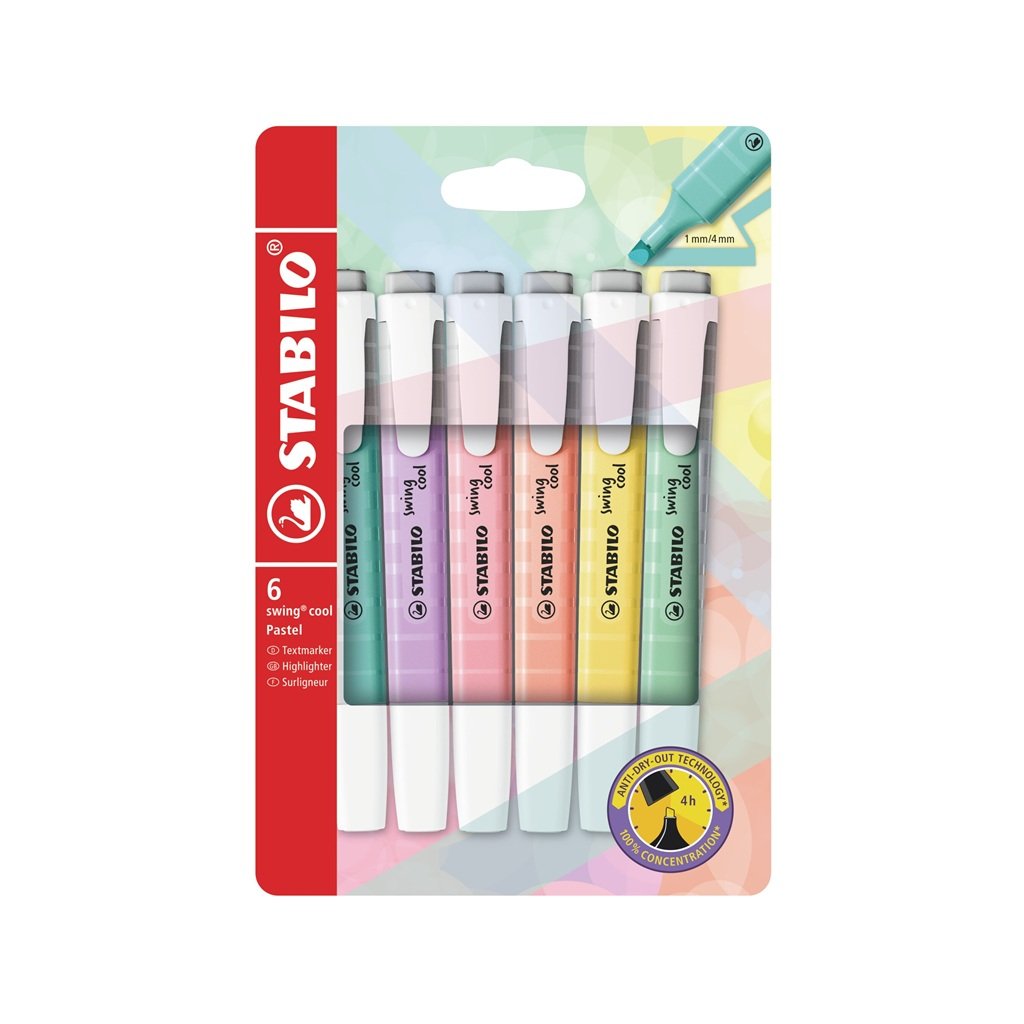 Zvýrazňovače STABILO swing cool Pastel, 6 ks